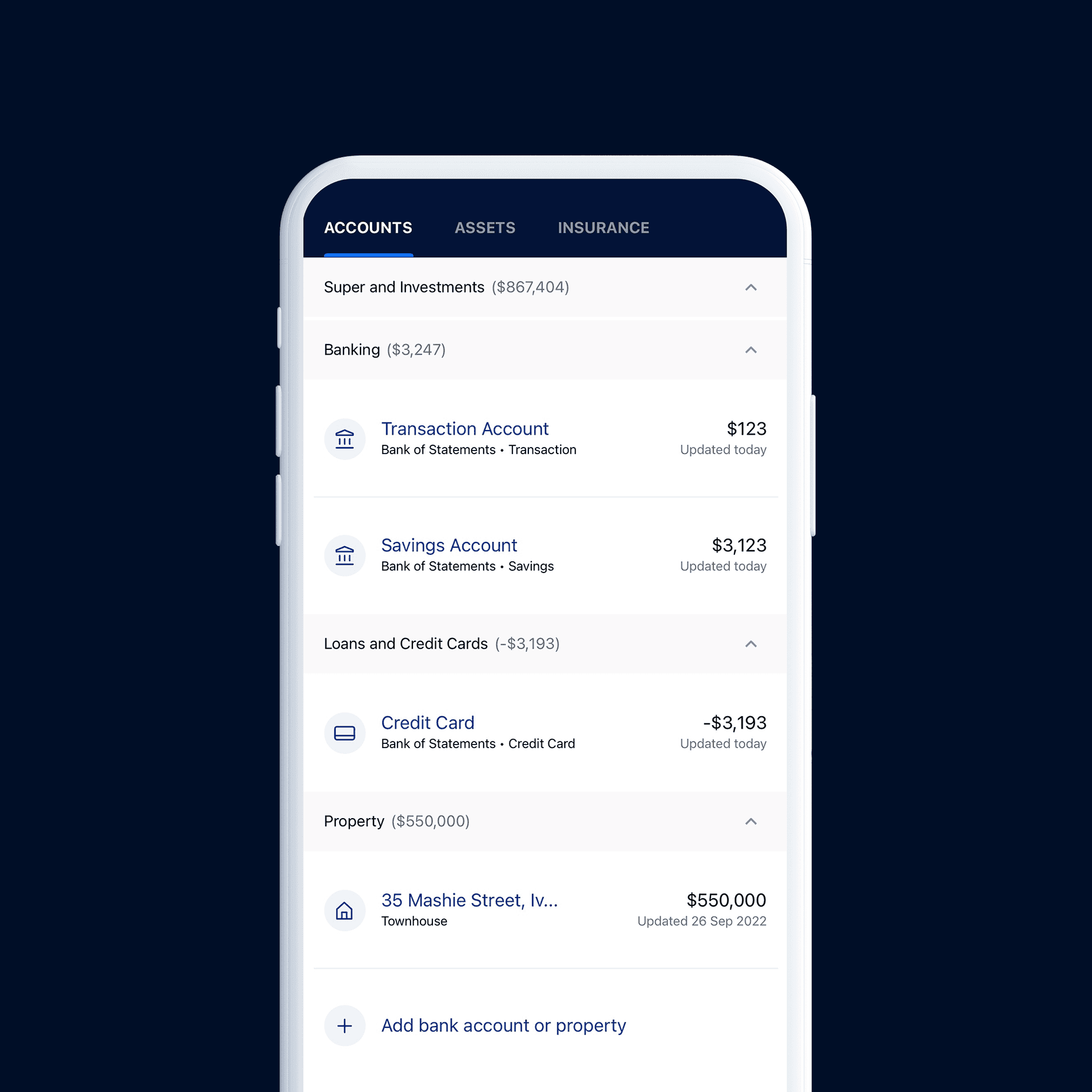 Working closely with the business we developed an app that collated all the customer's assets into one place, bringing account balances, housing assets and stocks together. This brought clarity to Netwealth's customers, allowing them to easily understand their financial position.